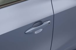 Transparante beschermfolie die het portier rondom de handgreep van de Subaru Solterra beschermt tegen krassen.